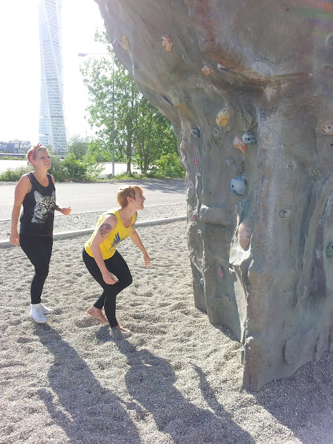 Det har varit fantastiskt väder idag så trots tusen saker på måste-göra-listan plus värkande lår åkte jag ut på lite rull ner till hamnen med Monster Midge från Ume radicals som är besök här i sköna götet. Vi chillrullade och åt glass nere i hamnen precis vid vattnet. Fantastiskt skönt och fina omgivningar och balsam för själen med sådana här små utflykter.